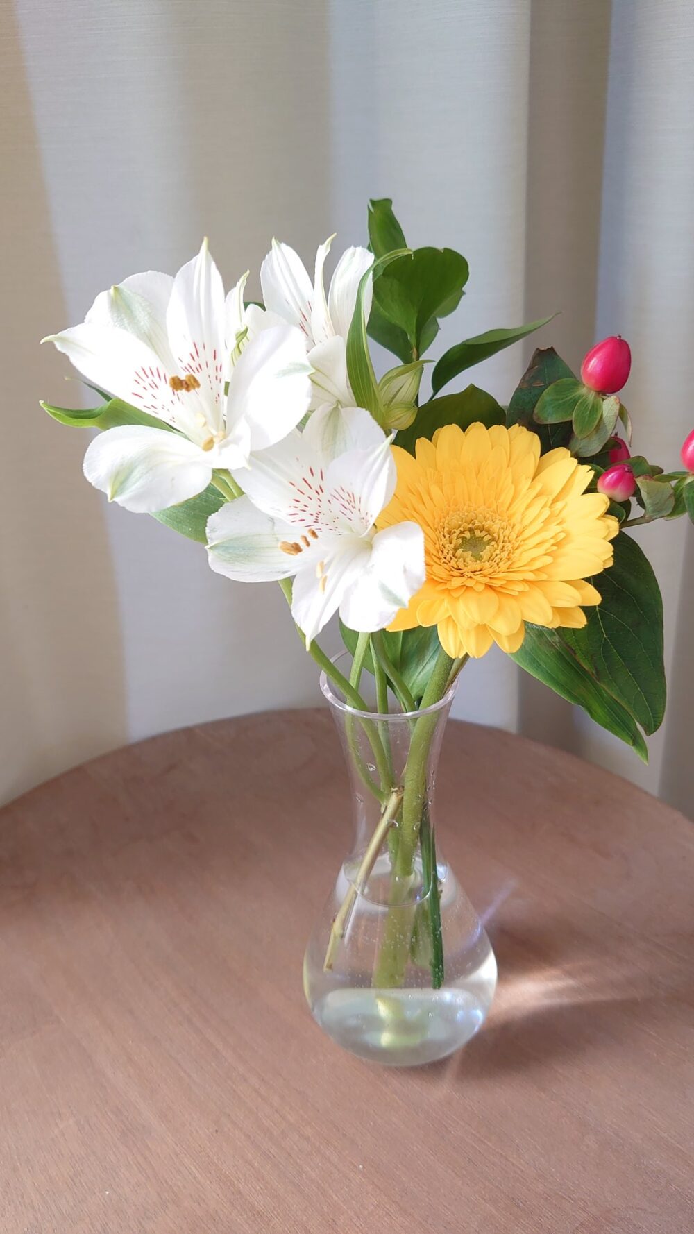 11/19(水)~11/21(金)お届け分の「ガーベラ・アルストロメリア・ヒペリカム」は記事を書いている11月30日現在、綺麗に元気に咲いております。